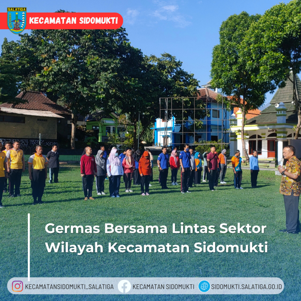 Jumat, 15 Desember 2023 di Lapangan Kecamatan Sidomukti telah sukses dilaksanakan Germas Bersama Lintas Sektor di Wilayah Kecamatan Sidomukti yang dihadiri oleh Camat Sidomukti, Kapolsek Sidomukti, Danramil, Kepala Puskesmas Mangunsari, Kepala Puskesmas Kalicacing, Kepala KUA Sidomukti, Lurah Dukuh, Lurah Kalicacing, Lurah Kecandran, Lurah Mangunsari beserta jajarannya.