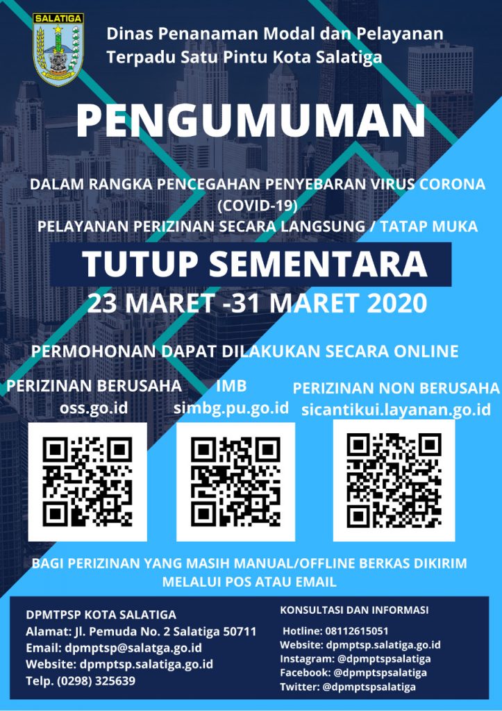 Uncategorized INFO SEPUTAR WABAH VIRUS CORONA 23 March 2020 Berikut kita sampaikan info tentang pencegahan penyebaran COVID-19 Previous SURAT EDARAN PEMKOT SALATIGA TERKAIT VIRUS CORONA Newer LINTAS SEKTORAL You May Also Like Data Analysist 10 February 2021 Web Development Specialist 10 February 2021 PENGUMUMAN PEMENANG PENGUNDIAN HADIAH PBB P2 TAHUN PAJAK 2019 KECAMATAN SIDOMUKTI Nomor: 97.11 / 761 /602/2019 Pada HariJumat Tanggal 8 November 2019 26 November 2019