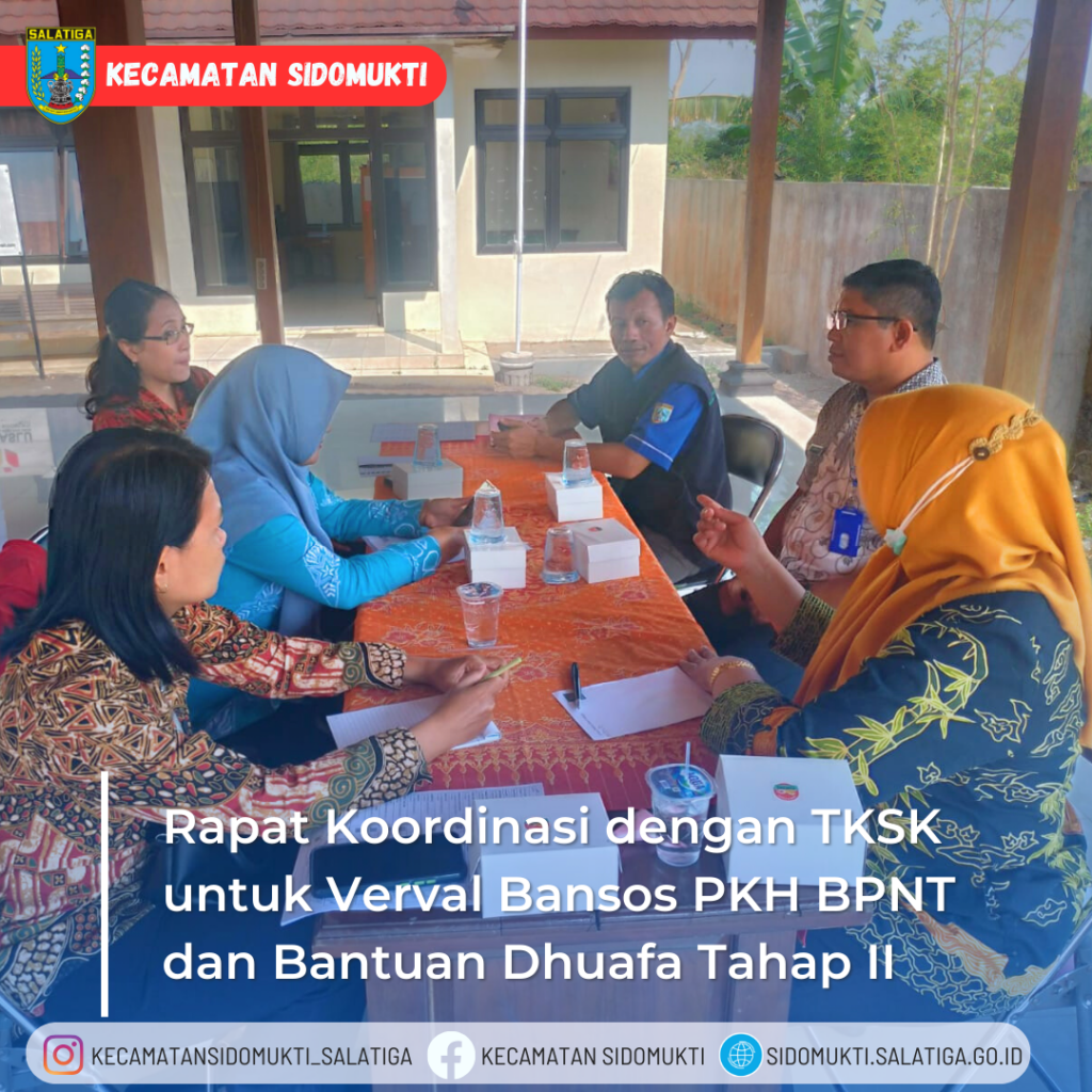 Telah dilaksanakan Rapat Koordinasi Kasi SosPermas se-kecamatan Sidomukti dan TKSK untuk membahas Kegiatan Verval Bansos PKH BPNT Kecamatan Sidomukti dan Bantuan Dhuafa Tahap II, pada hari Rabu, 11 Oktober 2023.
