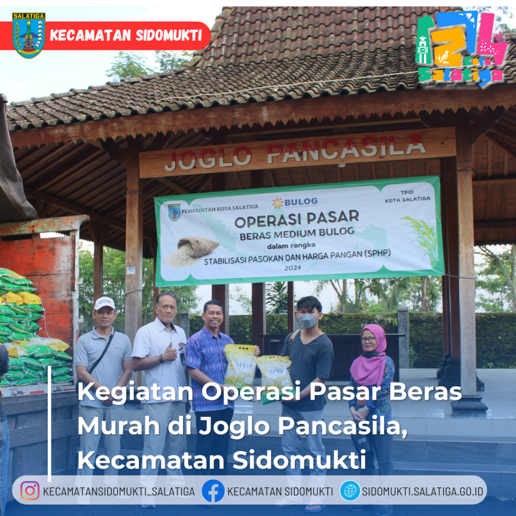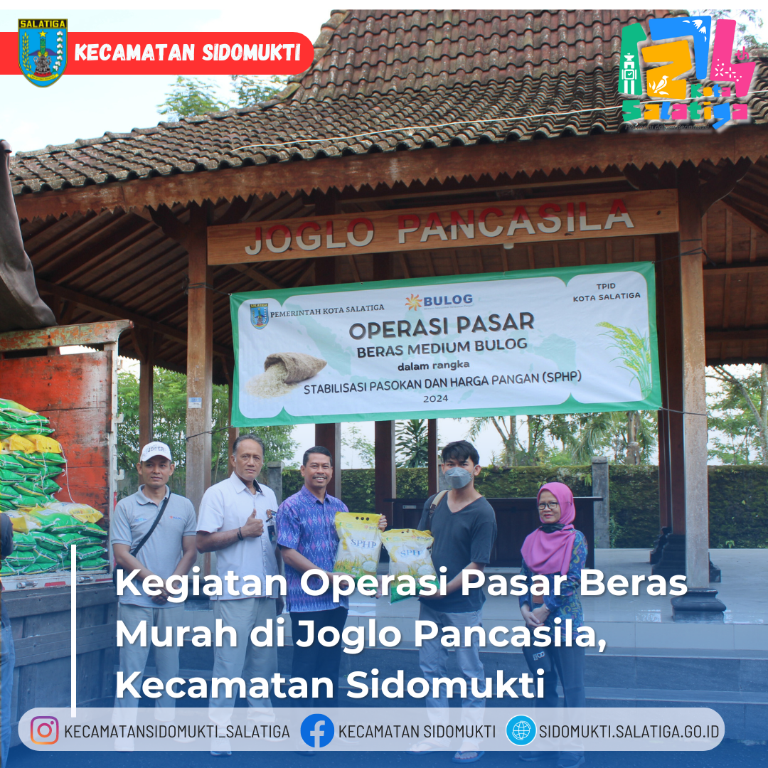 Dalam rangka untuk mengatasi inflasi, Pemerintah Kota Salatiga dalam hal ini adalah Bagian Perekonomian Sekretariat Daerah, Dinas Perdagangan, Bulog dan Kecamatan Sidomukti pada tanggal 2 April 2024 telah dilaksanakan Kegiatan Operasi Pasar Beras Murah yang bertempat di Joglo Pancasila, Kecamatan Sidomukti yang dihadiri warga masyarakat yang telah mendapatkan kupon sehari sebelumnya telah dibagikan oleh RW setempat.